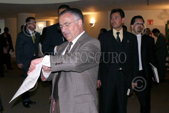 MÉXICO, D.F. 26JUNIO2006.- César de Molina Juárez, Rafael Coello Cetina, Mariano Azuela Güitrón, ministro presidente de la Suprema Corte de Justicia de la Nación (SCJN), y Eduardo Ferrer precidieron el seminario de derecho constitucional tributario en iberoamérica. FOTO: Iván Stephens/CUARTOSCURO.COM