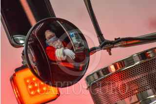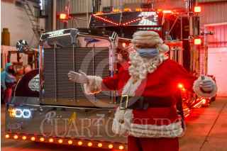 TOLUCA, ESTADO DE MÉXICO, 16DICIEMBRE2020.- Santa Claus se encuentra recorriendo algunas avenidas de la capital mexiquense en un tracto camión llamado “Capricho” modelo 1979 y modificado el cual ha sido adornado con un árbol de Navidad, regalos y luces, propiedad de la empresa Exe Logística; de acuerdo a Josué Cruz, director de esta empresa, salen por las noches para dar un momento de alegría, ilusión y felicidad, a todas las personas que se encuentran en el camino y cómo una forma de rendir un homenaje a los hombres del transporte de carga, hombres camión y todos aquellos que trabajan en el rubro del transporte, ya que durante esta pandemia continuaron su labor de todo corazón, apoyando a la población. Respetando todas las medidas higiénicas el tractocamión navideño no se detiene y Santa Claus solo saluda de lejos a las personas, las rutas no son difundidas para evitar aglomeraciones en tiempos de COVID-19, los recorridos son dos veces a la semana durante el mes de diciembre a partir de las 6 de la tarde solo en el municipio de Toluca, siendo la primera vez que lo realizan esperan que en próximos años puedan abarcar otros municipios. FOTO: CRISANTA ESPINOSA AGUILAR /CUARTOSCURO.COM
