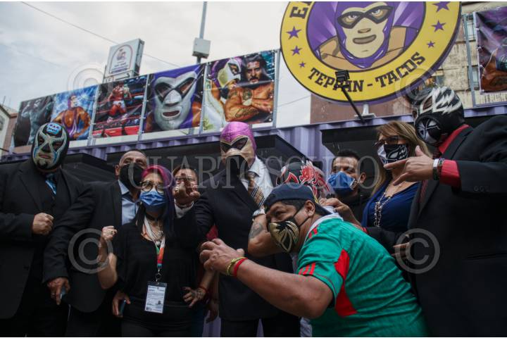 CIUDAD DE MÉXICO, 16DICIEMBRE2020.- El luchador "El fantasma" inauguró su restaurante de tacos "El fantasma Teppan tacos" que se ubica en las inmediaciones del Mercado de Artesanías San Juan, en el Centro Histórico. FOTO: ANDREA MURCIA /CUARTOSCURO.COM