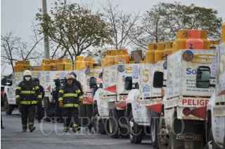 XALAPA, VERACRUZ, 16DICIEMBRE2020.- Policías estatales detuvieron a 9 empleados de la empresa Gasera SoniGas y aseguraron 8 camionetas, tras descubrir a los trabajadores ordeñando o trasvasando gas LP, en un camino del municipio de Emiliano Zapata, para después revender por su cuenta el producto. FOTO: YERANIA ROLÓN/CUARTOSCURO.COM