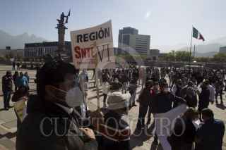 MONTERREY, NUEVO LEÓN, 17DICIEMBRE2020.- Durante toda la semana, maestros de la Sección 50 del estado de Nuevo León han realizado diferentes protestas y bloqueos viales, debido al pago parcial de su aguinaldo correspondiente, el cual sería liquidado en enero por disposición del gobierno estatal y acuerdos con miembros del sindicato. FOTO: GABRIELA PÉREZ MONTIEL / CUARTOSCURO.COM