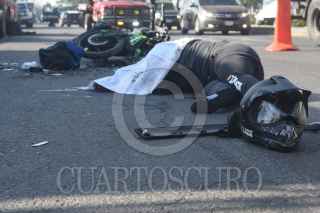 ESTADO DE MEXICO, 17DICIEMBRE2020.- Un hombre perdió la vida al estrellarse con su motocicleta en la parte trasera de una camioneta de pasajeros en el kilómetro 25.5 de la carretera Mexico-Texcoco, en el municipio de San Vicente Chicoloapan. FOTO: CRISTIAN HERNANDEZ /CUARTOSCURO.COM