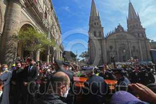 GUADALAJARA, JALISCO, 19DICIEMBRE2020.- Esta mañana familiares, amigos, políticos de diversas corrientes políticas y publico en general rindieron homenajes de cuerpo presente al ex gobernador Jorge Aristóteles Sandoval Díaz, quien fuera asesinado en un antro en el municipio de Puerto Vallarta la madrugada del pasado viernes, el primer homenaje tuvo lugar en Palacio de Gobierno, encabezado por el Gobernador del Estado Enrique Alfaro, el segundo en el Congreso del estado y el tercero en el Ayuntamiento de Guadalajara. FOTO: FERNANDO CARRANZA GARCIA / CUARTOSCURO.COM