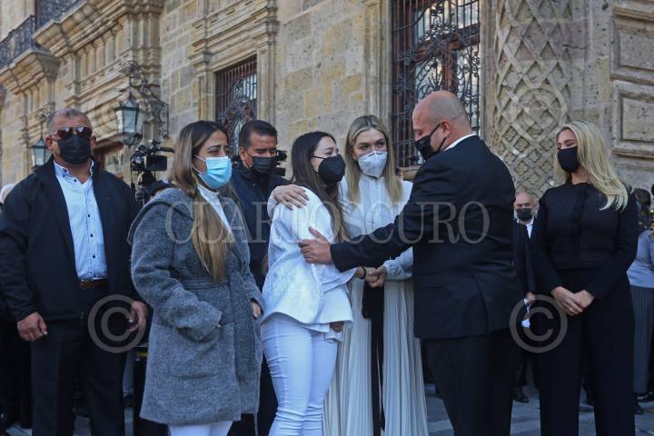 GUADALAJARA, JALISCO, 19DICIEMBRE2020.- Esta mañana familiares, amigos, políticos de diversas corrientes políticas y publico en general rindieron homenajes de cuerpo presente al ex gobernador Jorge Aristóteles Sandoval Díaz, quien fuera asesinado en un antro en el municipio de Puerto Vallarta la madrugada del pasado viernes, el primer homenaje tuvo lugar en Palacio de Gobierno, encabezado por el Gobernador del Estado Enrique Alfaro, el segundo en el Congreso del estado y el tercero en el Ayuntamiento de Guadalajara. FOTO: FERNANDO CARRANZA GARCIA / CUARTOSCURO.COM