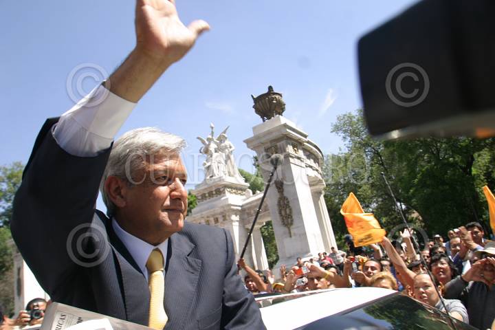 MEXICO, D.F. 27JUNIO2006.- Andrés Manuel López Obrador, candidato a la presidencia por la coalición Por el Bien de Todos, durante un acto de campaña en el Hemiciclo a Juárez. FOTO: Nelly Salas/CUARTOSCURO.COM