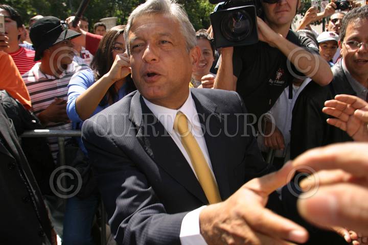 MEXICO, D.F. 27JUNIO2006.- Andrés Manuel López Obrador, candidato a la presidencia por la coalición Por el Bien de Todos, durante un acto de campaña en el Hemiciclo a Juárez. FOTO: Nelly Salas/CUARTOSCURO.COM