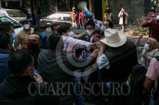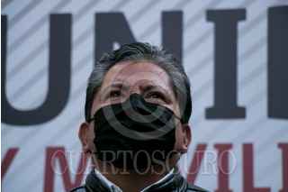 CIUDAD DE MÉXICO, 19DICIEMBRE2020.- En conferencia de prensa, Mario Delgado, dirigente nacional de Morena, anunció a David Monreal, ex alcalde de Fresnillo, como precandidato a la gubernatura del estado de Zacatecas. La noticia causó molestia entre los simpatizantes del candidato José Narro, quienes gritaron consignas como: ¡Fraude! y ¡Fuera los Monreal de Zacatecas! FOTO: GALO CAÑAS/CUARTOSCURO.COM