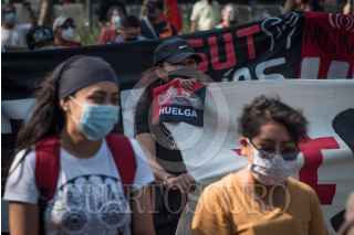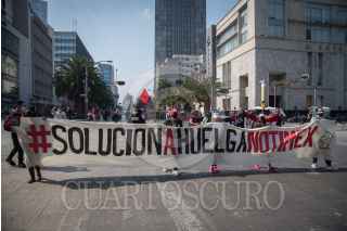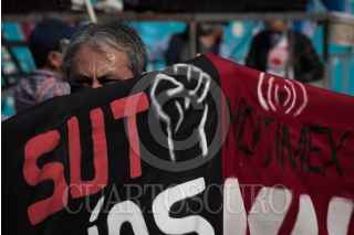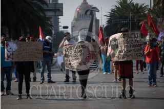 CIUDAD DE MÉXICO,19DICIEMBRE2020.- Miembros del Sindicato Único de Trabajadores (SUT) Notimex, durante su llegada a la avenida Juárez en el centro histórico, como parte de la movilización organizada rumbo al Hemiciclo Juárez. FOTO: MARIO JASSO/CUARTOSCURO.COM