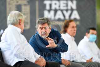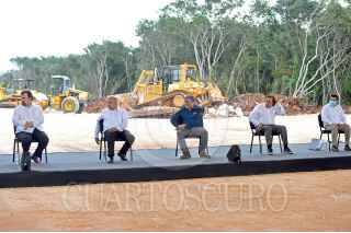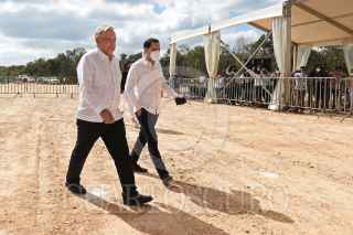HELACHO, YUCATÁN, 19DICIEMBRE2020.- Andrés Manuel López Obrador, presidente de Méxic, presidió la Supervisión de Obra del Tren Maya, Tramo 3 Calkiní – Izamal. Lo acompañaron Manuel Muñozcano Cardos, representante de Grupo AZVI (empresa constructora encargada del proyecto); Mauricio Vila Dosal, gobernador del estado de Yucatán; Rogelio Jiménez Pons Gómez, director general del Fondo Nacional de Fomento al Turismo (FONATUR); Daniel Chávez Morán, supervisor honorario del Tren Maya y Rodolfo Castillo Huchim, presidente municipal de Halachó. FOTO: PRESIDENCIA/CUARTOSCURO.COM