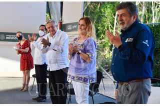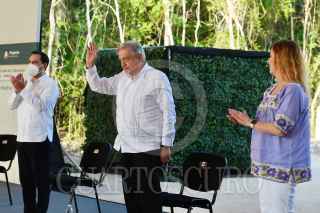TINUM, YUCATÁN, 19DICIEMBRE2020.- Andrés Manuel López Obrador, presidente de México, presidió la Supervisión de Obra del Tren Maya, Tramo 4 izamal - Cancún. Lo acompañaron: Guadalupe Phillips Margain, directora general Grupo ICA (empresa constructora encargada del proyecto); Mauricio Vila Dosal, gobernador Constitucional del Estado de Yucatán; Beatriz Gutiérrez Müller, Presidenta honoraria del Consejo Asesor Honorario de la Coordinación Nacional Memoria Histórica y Cultural de México; Rogelio Jiménez Pons Gómez, director general del Fondo Nacional de Fomento al Turismo (FONATUR) y Daniel Chávez Morán, supervisor honorario del Tren Maya. FOTO: PRESIDENCIA/CUARTOSCURO.COM