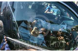 TULUM, QUINTANA ROO, 20DICIEMBRE2020.- Andrés Manuel López Obrador, Presidente de México, observa al personal médico que protestaron cuando arriba a la zona arqueológica por la falta de pago del bono Covid-19. FOTO: ELIZABETH RUIZ/CUARTOSCURO.COM