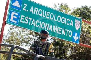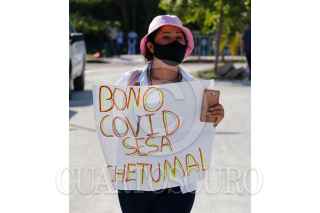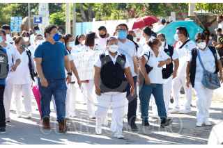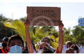 TULUM, QUINTANA ROO, 20DICIEMBRE2020.- Personal médico protestó en los alrededores de la zona arqueológica, donde el Jefe del Ejecutivo celebró un evento, para pedir el pago de su bono Covid-19. FOTO: ELIZABETH RUIZ/CUARTOSCURO.COM