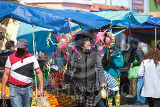 METEPEC, ESTADO DE MÉXICO, 21DICIEMBRE2020.- Vecinos Metepec acudieron al tradicional Mercado de los Lunes, en donde se continúa con filtros sanitarios para su ingreso, dando gel antibacterial y pidiendo el uso de cubrebocas, los puestos con separaciones; la mayoría realiza sus colorar para la cena de Navidad. El Estado de México regresó este fin de semana a Semáforo Rojo ante la contingencia por COVID-19. FOTO: CRISANTA ESPINOSA AGUILAR /CUARTOSCURO.COM