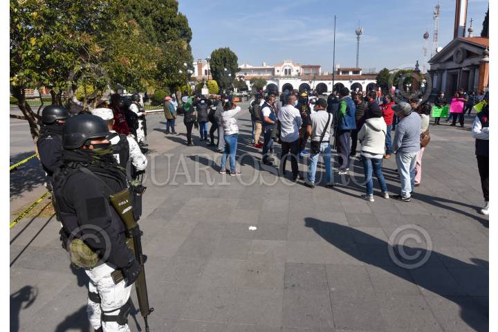 ALMOLOYA DE JUÁREZ, ESTADO DE MÉXICO, 21DICIEMBRE2020.- Comerciantes de este municipio se manifestaron el el Palacio Municipal exigiendo los dejen trabajar, al regresar a Semáforo Rojo por la pandemia por COVID-19, negocios no esenciales no podrán abrir. FOTO: CRISANTA ESPINOSA AGUILAR /CUARTOSCURO.COM
