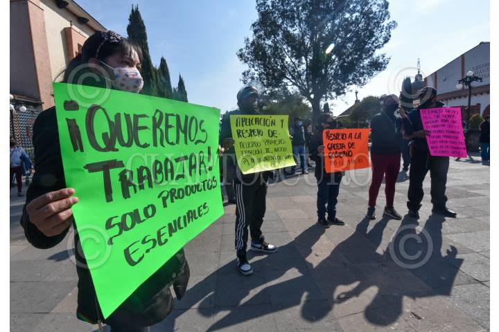 ALMOLOYA DE JUÁREZ, ESTADO DE MÉXICO, 21DICIEMBRE2020.- Comerciantes de este municipio se manifestaron el el Palacio Municipal exigiendo los dejen trabajar, al regresar a Semáforo Rojo por la pandemia por COVID-19, negocios no esenciales no podrán abrir. FOTO: CRISANTA ESPINOSA AGUILAR /CUARTOSCURO.COM