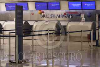 CIUDAD DE MÉXICO, 21DICIEMBRE2020.- La aerolínea British Airways de la Terminal 1 del Aeropuerto Internacional de la Ciudad de México (AICM) permaneció cerrada debido a que los vuelos directos que se ejercen hacia Reino Unido regularmente se realizan diario a las 18:50 horas, mientras que las corridas aéreas que cuentan con escalas en Estados Unidos se distribuyen en la Terminal 1 y 2. La Aerolínea American Airlines ofreció sus servicios para los pasajeros que viajaron hacia Londres, Estados Unidos y Texas. El presidente de México, Andrés Manuel López Obrador, informó en su conferencia mañanera que hoy en la noche se analizará frenar los vuelos hacia Reino Unido debido a la nueva cepa del Coronavirus que se presentó en este país FOTO GRACIELA LÓPEZ /CUARTOSCURO.COM