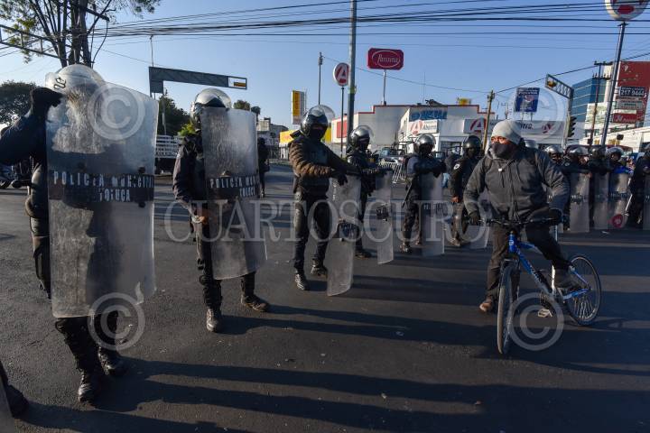 TOLUCA, ESTADO DE MÉXICO, 22DICIEMBRE2020.- A temprana hora se instaló un operativo de confinamiento en la zona de la Terminal de Autobuses de Toluca y el Mercado Juárez, con la finalidad de disminuir la movilidad vehicular y peatonal en el lugar, ante el aumento de contagios por COVID-19, patrullas municipales y policías evitan el acceso a la zona, y la instalación de comercio ambulante, solo se permite el paso a residentes y autobuses a la terminal. FOTO: CRISANTA ESPINOSA AGUILAR /CUARTOSCURO.COM