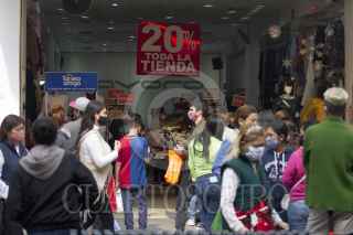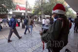 MONTERREY, NUEVO LEÓN, 22DICIEMBRE2020.- Las calles del centro de Monterrey lucen abarrotadas de personas que realizan compras navideñas, las tiendas pueden recibir solamente el 30% de aforo debido al incremento de casos por Covid-19. FOTO: GABRIELA PÉREZ MONTIEL / CUARTOSCURO.COM