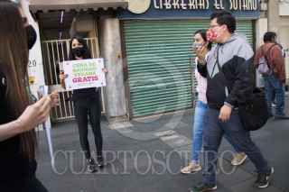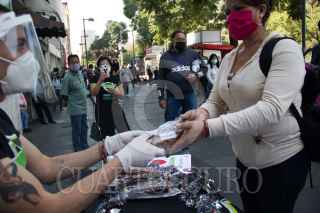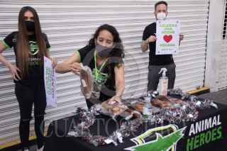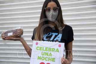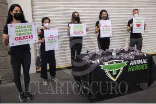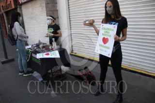 CIUDAD DE MÉXICO 22DICIEMBRE2020.- La organización Internacional, Animal Heroes, ofreció comida vagana a traseúntes de la avenida Juárez. Insisten en comer lomo hecho de un deribado de la harina de trigo y que contiene proteínas. La actriz y Activista Sofía Sisiniega acudió al llamado de la Cena de Navidad Vagana. FOTO: VICTORIA VALTIERRA/CUARTOSCURO.COM