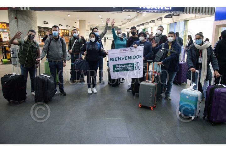 CIUDAD DE MÉXICO, 23DICIEMBRE2020.- Trabajadores de la salud provenientes de distintos estados de la República como: Quintana Roo, Oaxaca y Chiapas, arribaron a la Terminal 2 del Aeropuerto internacional de la Ciudad de México (AICM) para reforzar la atención en los hospitales de pacientes con covid-19. FOTO: MARIO JASSO/CUARTOSCURO.COM
