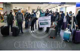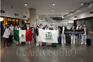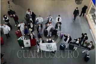 CIUDAD DE MÉXICO, 23DICIEMBRE2020.- Trabajadores de la salud provenientes de distintos estados de la República como: Quintana Roo, Oaxaca y Chiapas, arribaron a la Terminal 2 del Aeropuerto internacional de la Ciudad de México (AICM) para reforzar la atención en los hospitales de pacientes con covid-19. FOTO: MARIO JASSO/CUARTOSCURO.COM