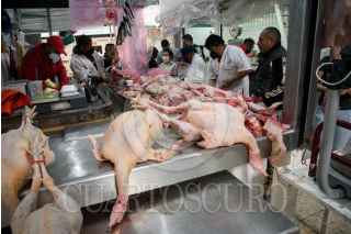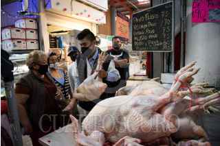 CIUDAD DE MÉXICO, 23DICIEMBRE2018.- Personas realizan sus últimas compras en el Mercado de San Juan, para surtir los alimentos que usarán para la cena de navidad, entre lo que destaca el pavo el cual está entre los 70 y 75 pesos por kilo. FOTO: MARIO JASSO /CUARTOSCURO.COM