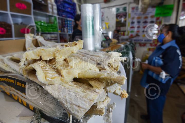 TOLUCA, ESTADO DE MÉXICO, 23DICIEMBRE2020.- Ante la contingencia por COVID-19 no se realizarán grandes reuniones en esta Navidad, locatarios de carne y semillas del Mercado Juárez en Toluca afirman que sus ventas para estas fechas en comparación a años pasados ha bajado más de un 60 por ciento, carne y bacalao es uno de los principales productos que buscan los clientes, en esta ocasión ha sido menos sus ventas. FOTO: CRISANTA ESPINOSA AGUILAR /CUARTOSCURO.COM
