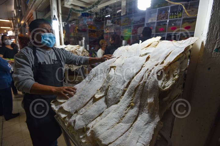 TOLUCA, ESTADO DE MÉXICO, 23DICIEMBRE2020.- Ante la contingencia por COVID-19 no se realizarán grandes reuniones en esta Navidad, locatarios de carne y semillas del Mercado Juárez en Toluca afirman que sus ventas para estas fechas en comparación a años pasados ha bajado más de un 60 por ciento, carne y bacalao es uno de los principales productos que buscan los clientes, en esta ocasión ha sido menos sus ventas. FOTO: CRISANTA ESPINOSA AGUILAR /CUARTOSCURO.COM