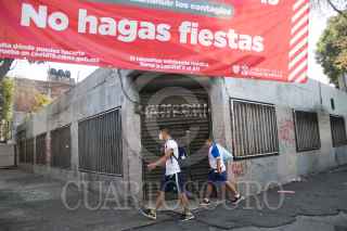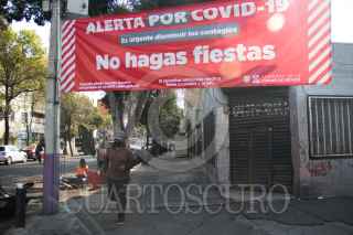 CIUDAD DE MÉXICO 23DICIEMBRE2020.-En las calles de Doctor Barragán y Doctor Norma, Colonia de los Doctrores en la alcaldía de Cuauhtémoc; se colocó una manta alusiva a disminuir los contagios por Covid 19 en la Capital Mexicana. FOTO: VICTORIA VALTIERRA/CUARTOSCURO.COM