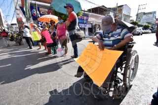 CHILPANCINGO, GUERRERO, 23DICIEMBRE2020.- Integrantes del Frente de Grupos Vulnerables y Personas con Discapacidad bloquearon el cruce de la avenida Juan N. Alvarez y Cristobal Colón, en la entrada del Paso a Desnivel en Chilpancingo, para exigir a las autoridades estatales se liberen los recursos de los microcréditos prometidos para este grupo. Además, denunciaron que hasta el momento el gobierno del estado no ha cumplido con el pago de los programas que benefician a discapacitados, personas de la tercera edad y madres solteras. Por lo que hicieron un exhorto para que el gobernador Héctor Astudillo Flores gire instrucciones a las Secretarias de Finanzas y de Economía para que liberen estos recursos. FOTO: DASSAEV TÉLLEZ ADAME/CUARTOSCURO.COM