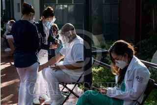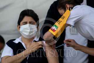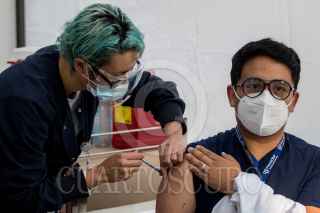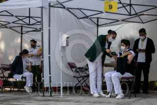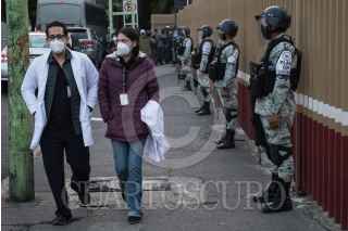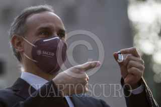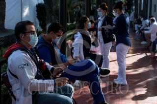 CIUDAD DE MÉXICO, 24DICIEMBRE2020.- Desde tempranos horas, cientos de médicos adscritos al sector salud, naval y militar se dieron cita en el Hospital General de Mexico “Dr. Eduardo Liceaga” para aplicarse la vacuna de Pfizer-BiotechMN contra el Covid-19, la cual arribó ayer al país. El subsecretario de Prevención y Promoción a la Salud, Hugo López-Gatell en compañía de la jefa de gobierno Claudia Sheinbaum agradeció el gran esfuerzo y labor que los médicos han emprendido durante los 10 meses de la pandemia. FOTO: GALO CAÑAS/CUARTOSCURO.COM