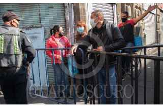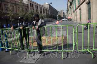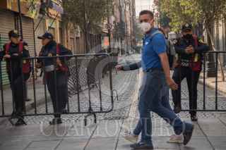 CIUDAD DE MÉXICO 24DICIEMBRE2020.- Por el cierre de comercios en el primer cuadro de la Capital, debido al semáforo rojo; policías vigilan y con vallas impiden el acceso de la gemte a las inmediaciones de Palacio Nacional. FOTO: VICTORIA VALTIERRA/CUARTOSCURO.COM