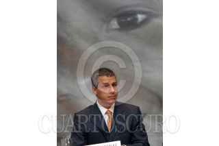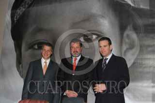MÉXICO D.F. 27JUNIO2006.- Carlos X González, de fundación televisa, Marcos Martínez, presidente de la Asociación de Bancos de México y el periodista, Carlos Loret de Mola, realizaron la presentación del programa Becalos que dara apoyo a maestros y alumnos de escasos recursos para que continuen sus estudios. FOTO: Miguel Areyano/CUARTOSCURO.COM