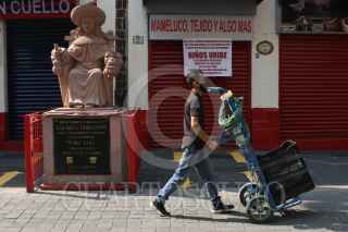 CIUDAD DE MÉXICO, 24DICIEMBRE2020.- Debido a las restricciones de apertura de negocios por el semáforo rojo de la ciudad la calle Niño Dios ubicada en el Centro Histórico icónica por la venta, reparación y hechura de vestimenta para Niños Dios, los locales permanece con sus cortinas abajo, esto con el objetivo de prevenir aglomeraciones en el primer cuadro de la ciudad. FOTO: ROGELIO MORALES /CUARTOSCURO.COM