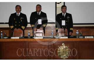 MÈXICO, D.F. 28JUNIO2006.- En el Centro de Estudios Superiores Navales, los capitanes de navìo Fernando J. Guerrero Aranda, Guillermo Carlos Archiga, Miguel Baez Barrera, Carlos Abascal Andrade y el embajador Eleazar B. Ruiz Àvila dictaron la conferencia "Desastres Naturales y Seguridad Marìtima Mutua" MÈXICO- ESTADOS UNIDOS- CANADÀ. FOTO: Paola Hidalgo/CUARTOSCURO.COM