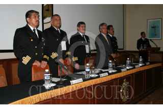 MÈXICO, D.F. 28JUNIO2006.- En el Centro de Estudios Superiores Navales, los capitanes de navìo Fernando J. Guerrero Aranda, Guillermo Carlos Archiga, Miguel Baez Barrera, Carlos Abascal Andrade y el embajador Eleazar B. Ruiz Àvila dictaron la conferencia "Desastres Naturales y Seguridad Marìtima Mutua" MÈXICO- ESTADOS UNIDOS- CANADÀ. FOTO: Paola Hidalgo/CUARTOSCURO.COM