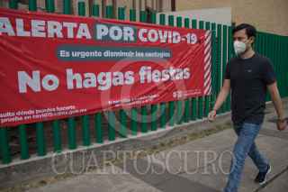 CIUDAD DE MÉXICO 25DICIEMBRE2020.- Anuncios que se han colocado en todas las colonias de la Ciudad, evitar reuniones para así evitar más contagios de Covid 19. FOTO: VICTORIA VALTIERRA/CUARTOSCURO.COM
