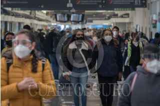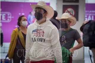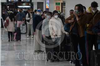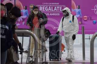 CIUDAD DE MÉXICO, 26DICIEMBRE2020.- Actividad en la terminal 1 del Aeropuerto internacional de la Ciudad de México (AICM) donde continúa el constante flujo de pasajeros y filas durante el semáforo rojo epidemiológico por covid-19. FOTO: MARIO JASSO/CUARTOSCURO.COM