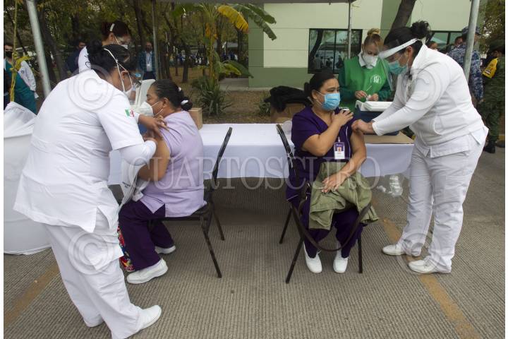 MONTERREY, NUEVO LEÓN, 29DICIEMBRE2020.- Con un total de mil, 950 vacunas contra el Covid; inició la aplicación en Nuevo León, las cuales fueron destinadas para personal médico que labora con enfermos por Covid-19 en el IMSS, ISSSTE, SEDENA, Salud del Estado, Hospitales Privados, Hospital Universitario y PEMEX, dentro de las instalaciones del Hospital Militar de Especialidades, en la IV Región Militar. FOTO: GABRIELA PÉREZ MONTIEL / CUARTOSCURO.COM