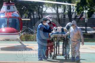 CIUDAD DE MÉXICO, 29DICIEMBRE2020.- Un elemento de la Guardia Nacional fue trasladado en helicóptero desde el estado de Guerrero, al hospital Magdalena de las Salinas, luego de que resultara herido en la cabeza durante un enfrentamiento. FOTO: CRISTIAN HERNÁNDEZ/CUARTOSCURO.COM