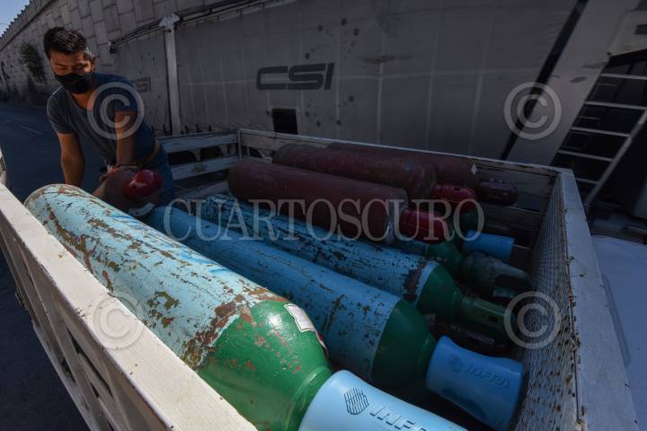 TOLUCA, ESTADO DE MÉXICO, 29DICIEMBRE2020.- Desde muy temprana hora personas acuden a formarse a la estación ubicada en Paseo Tollocan para poder adquirir oxígeno para sus pacientes con COVID-19, en automóvil o a pie llegan a contratar la renta de un tanque de oxígeno o rellenar los tanques, esto ocurrir en diversos puntos de venta de oxígeno medicinal. FOTO: CRISANTA ESPINOSA AGUILAR /CUARTOSCURO.COM