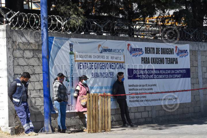 TOLUCA, ESTADO DE MÉXICO, 29DICIEMBRE2020.- Desde muy temprana hora personas acuden a formarse a la estación ubicada en Paseo Tollocan para poder adquirir oxígeno para sus pacientes con COVID-19, en automóvil o a pie llegan a contratar la renta de un tanque de oxígeno o rellenar los tanques, esto ocurrir en diversos puntos de venta de oxígeno medicinal. FOTO: CRISANTA ESPINOSA AGUILAR /CUARTOSCURO.COM