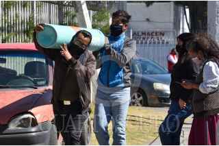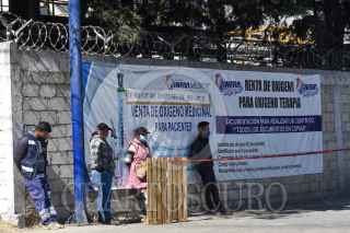TOLUCA, ESTADO DE MÉXICO, 29DICIEMBRE2020.- Desde muy temprana hora personas acuden a formarse a la estación ubicada en Paseo Tollocan para poder adquirir oxígeno para sus pacientes con COVID-19, en automóvil o a pie llegan a contratar la renta de un tanque de oxígeno o rellenar los tanques, esto ocurrir en diversos puntos de venta de oxígeno medicinal. FOTO: CRISANTA ESPINOSA AGUILAR /CUARTOSCURO.COM