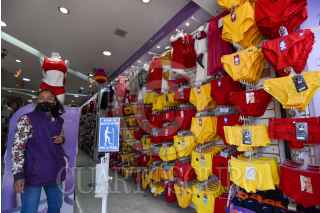 TOLUCA, ESTADO DE MÉXICO, 31DICIEMBRE2020.- Uno de los rituales para recibir elAño Nuevo es la ropa interior de colores amarillo y rojo, para atraer el dinero y amor, hombres y mujeres buscan estas prendas para tener suerte durante el año. FOTO: CRISANTA ESPINOSA AG