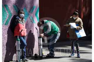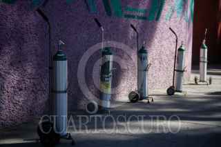 CIUDAD DE MÉXICO, 01ENERO2021.- Ante el alza de contagios del virus SARS-COV-2 en varios lugares se ha coordinado la recarga gratuita de cilindros de oxígeno portátiles para las personas que requieren de oxigenación artificial a consecuencia de la baja saturación ocasionada por padecer Coronavirus (COVID-19). Uno de los puntos es en las Instalaciones del Centro de Rehabilitación Infantil, Gustavo A. Madero (GAM). Cada mañana se reparten desde temprana hora 50 fichas a familiares que lleven su tanque y este cumpla las especificaciones. FOTO: ANDREA MURCIA/CUARTOSCURO.COM