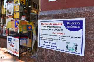 TOLUCA, ESTADO DE MÉXICO, 01ENERO2020.- Negocios de la ciudad de Toluca como Plaza Juárez instalaron un centro de acopio para ayudar a familias afectadas por COVID-19, reciben alimentos no perecederos, ropa, zapatos, medicamento, artículos de higiene personal, de limpieza, y los tienen al alcance de quien lo necesita. FOTO: CRISANTA ESPINOSA AGUILAR /CUARTOSCURO.COM