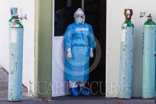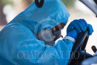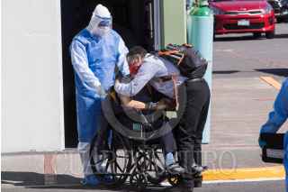 CIUDAD DE MÉXICO, 02ENERO2020.- El Hospital Militar Chivatito que atiende casos de Covid-19 se encuentra saturado, personal médico recomendó a varios pacientes que acudieron a solicitar atención les dijo que buscarán en otras unidades militares ya que encontraban sin camas. Una ambulancia llegó con una señora de la tercera edad y tuvo que esperar algunos minutos para ingresar, en lo que investigaron quien había coordinado el traslado, tras varias llamadas por celular fue ingresa al Triage Respiratorio. FOTO: MOISÉS PABLO/CUARTOSCURO.COM