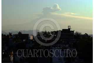 CUERNAVACA, MORELOS, 04ENERO2021.- Según información del Centro Nacional de Prevención de Desastres (CENAPRED) la actividad volcánica del Popocatépetl se ha incrementado en este inicio de año. Se han registrado más de mil minutos de tremor, decenas de exhalaciones de gas, ceniza y agua. En la imagen se observa el lado occidental del volcán, el cual emite una exhalación de mediano tamaño al amanecer de este día, la cual se dirigió hacia el sureste. FOTO: MARGARITO PÉREZ RETANA/CUARTOSCURO.COM