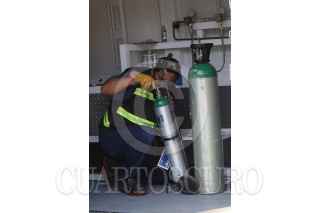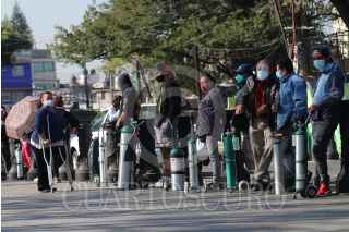 CIUDAD DE MÉXICO, 04ENERO2021.- Capitalinos asistieron a abastecerse de oxígeno gratuito en la explanada de la alcaldía Iztapalapa. Las personas que requieran del servicio deben presentar un tanque y el comprobante de un paciente contagiado de Covid-19, el horario de atención es de lunes a viernes de 9 a 17 horas en la explanada de esta demarcación. FOTO: GRACIELA LÓPEZ /CUARTOSCURO.COM