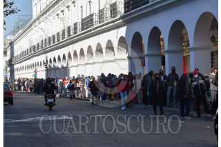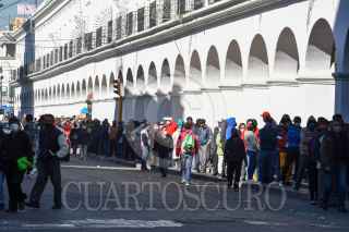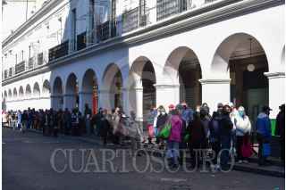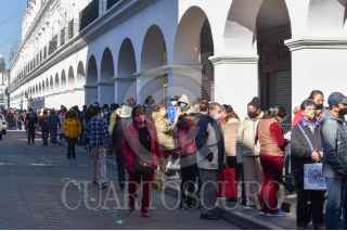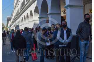 TOLUCA, ESTADO DE MÉXICO, 04ENERO2021-.- Una larga fila se observó desde muy temprana hora en los Portales de Toluca de personas que acudieron a pagar el impuesto predial, el acceso a los cajas de cobro fue por goteo, para evitar aglomeraciones al interior, aunque en el exterior no se guardará la sana distancia durante la contingencia COVID-19. FOTO: CRISANTA ESPINOSA AGUILAR /CUARTOSCURO.COM